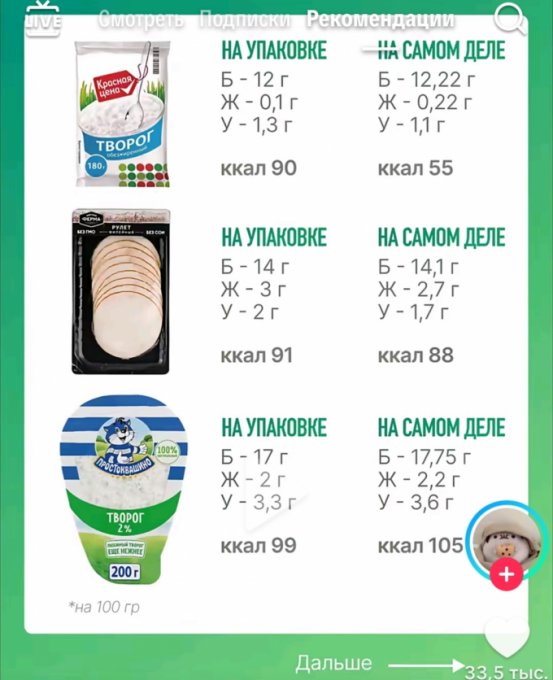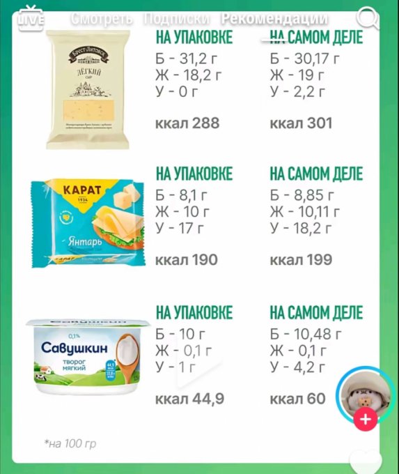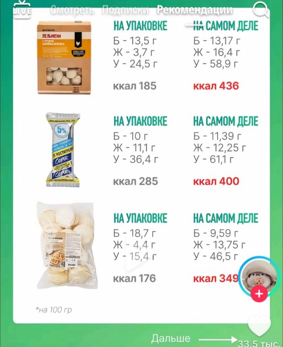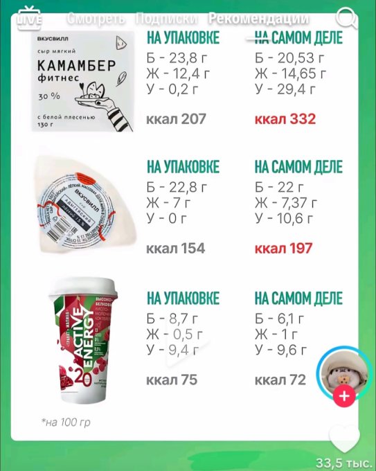| Кол-во | Калории | Белки | Жиры | Углеводы | |