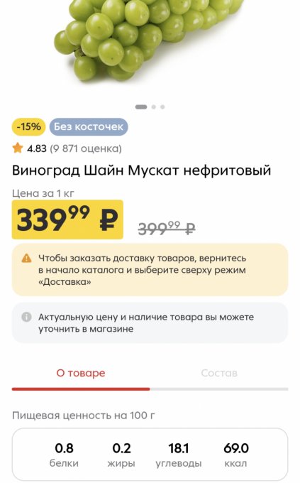 | Углеводы | 18.4 г | 8.4% | |