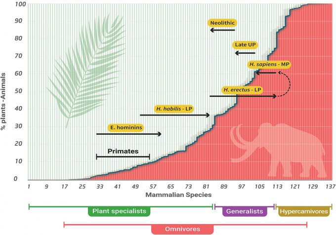 Говорили про то, что пока была мегафауна - питались мы жирненько...