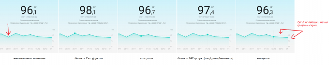 Красным написано, что там был 400-500 грамм белка и 2 кг овощей. График уныло ушёл вниз.