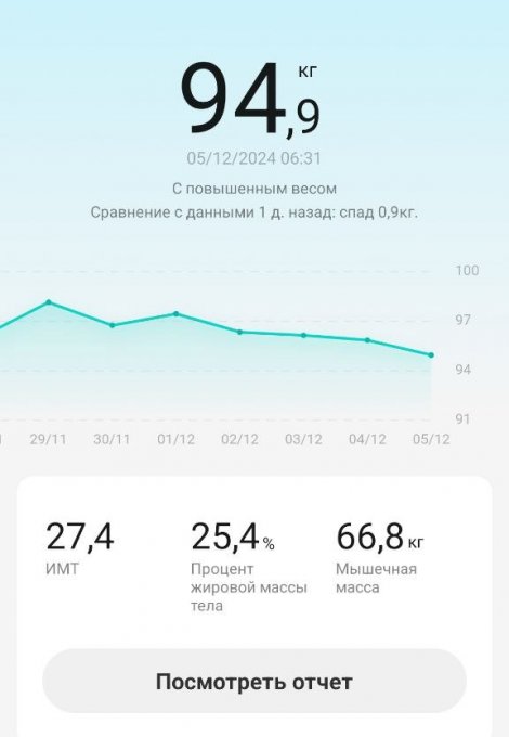 Забавно колеблется вес, но результат предсказуемо вниз...