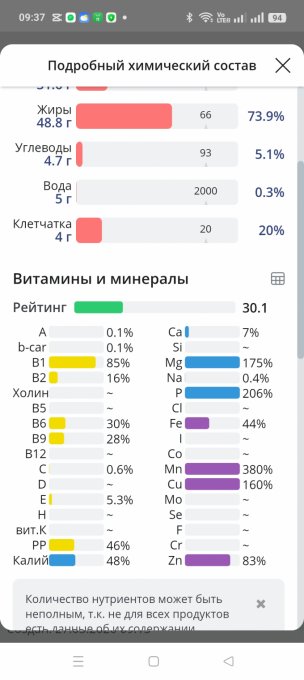 | Кол-во | Калории | Белки | Жиры | Углеводы | |