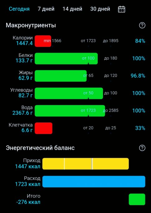 | Итого за день | 1425 | 840 | 68 | 44 | 39 |