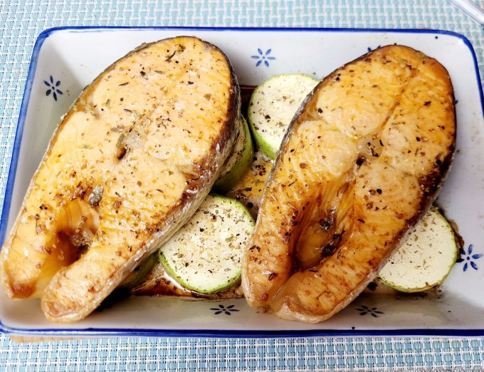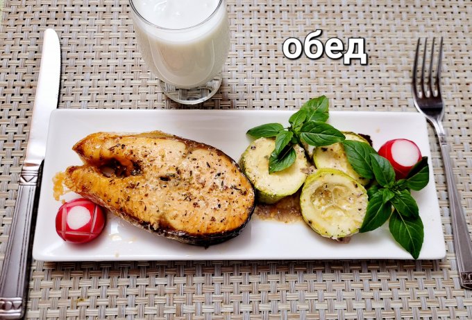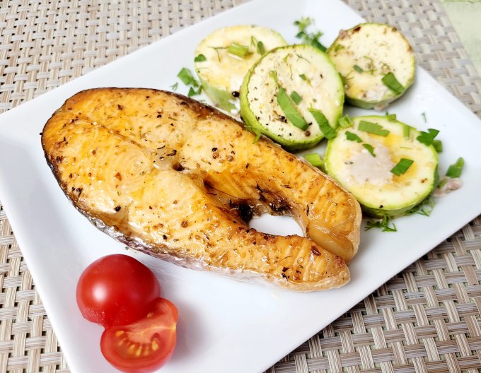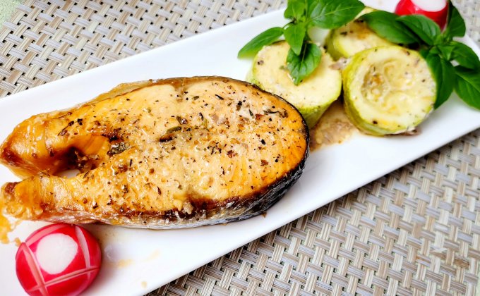 | Кижуч запечный с кабачками в духовке с приправой для рыбы |