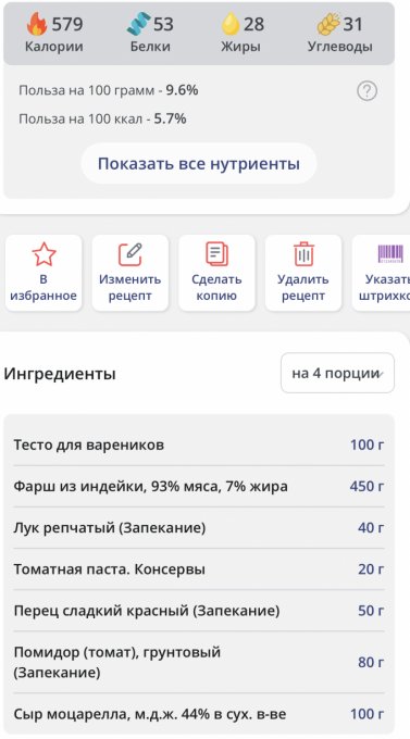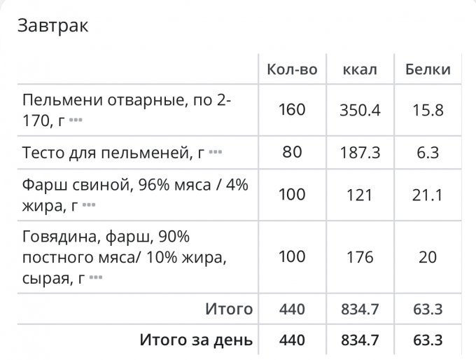 | Кол-во | Калории | Белки | Жиры | Углеводы | |