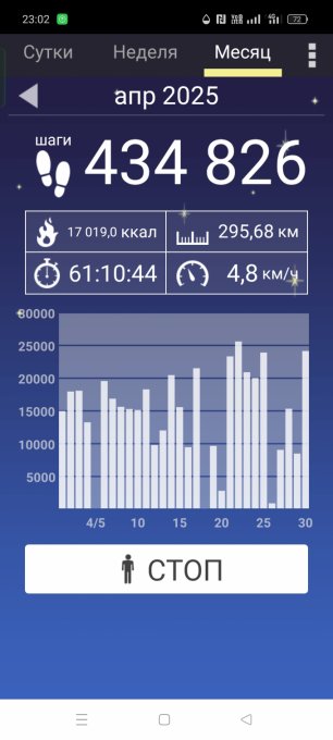 Пройдено за апрель 295.7км