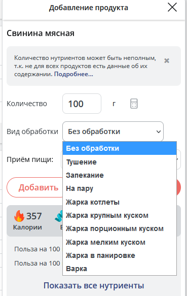 нет! При создании рецепта не вылазит способ приготовления мяса,