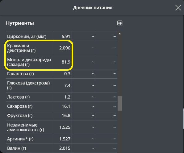 Углевод состоит только из сахара. Думаю это молоко и обилие сладкой