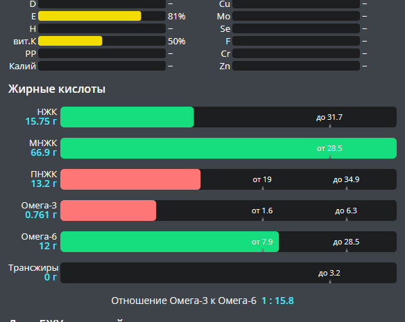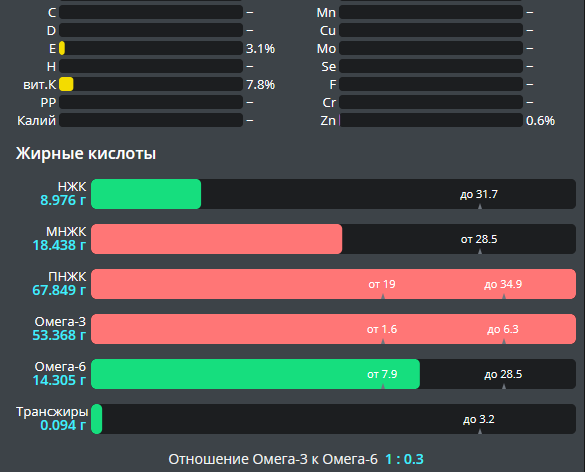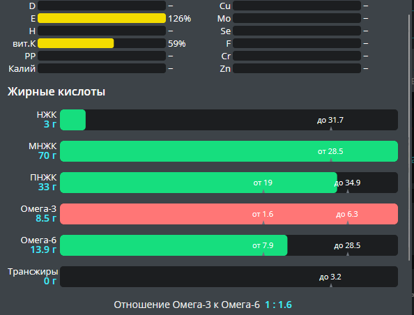 омега-6 (1к1.6), много труднодоступных лично для меня