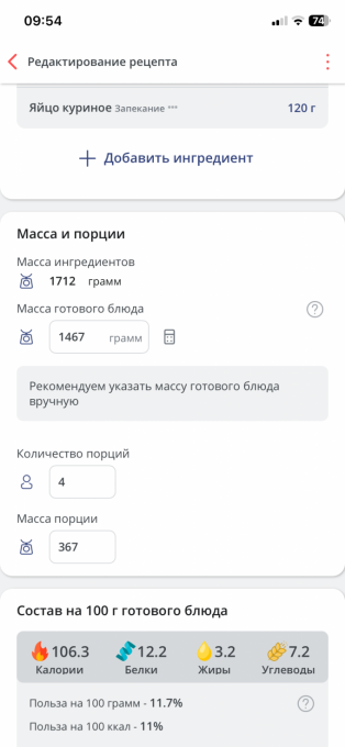 | Яичный белок куриный (Запекание) | 136 г |