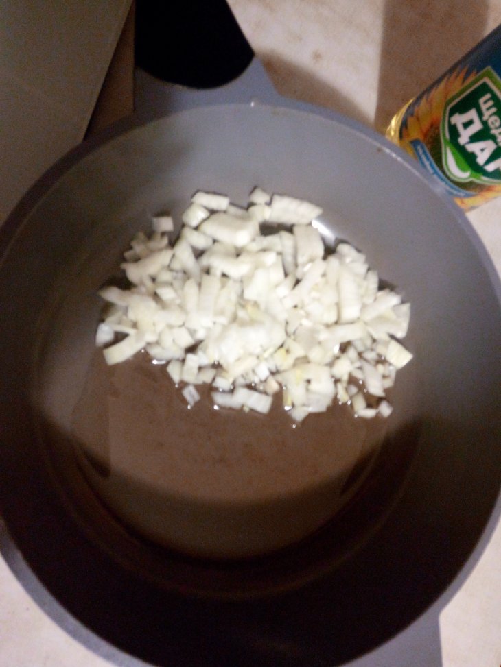 Лук порезать мелко, припустить в масле. В конце припускания на 1