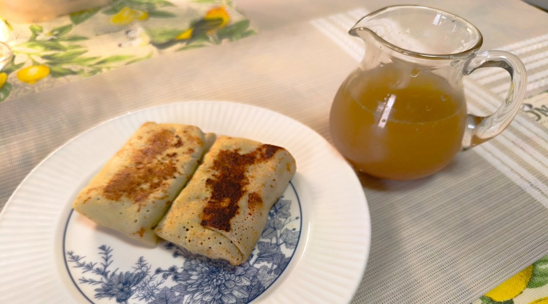 Подают блины с мясным бульоном.