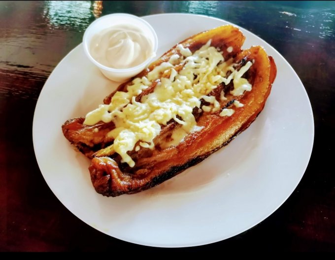 пробовала приготовить с обычным бананом, с российским сыром, и
