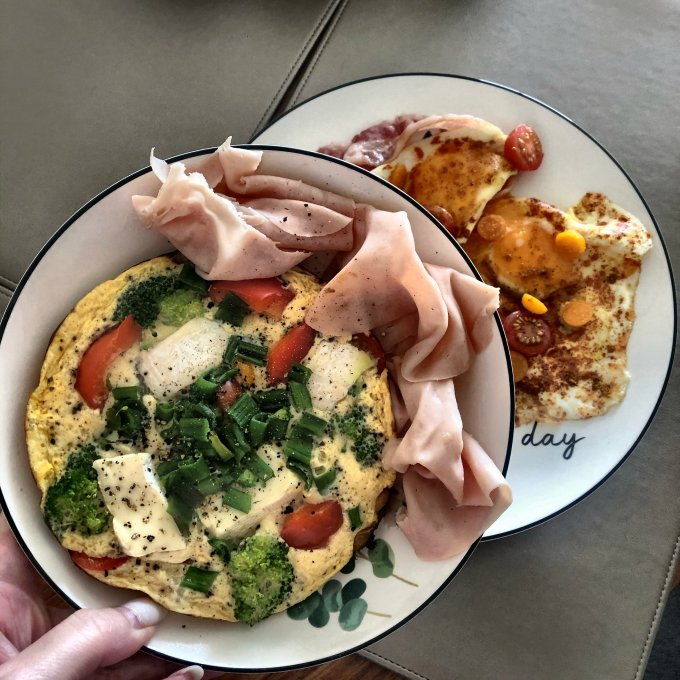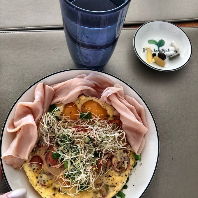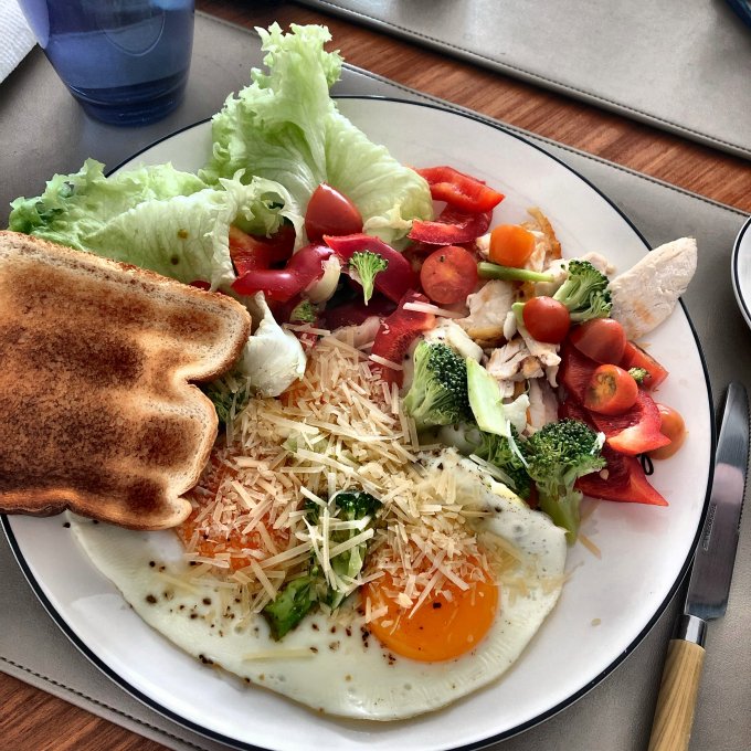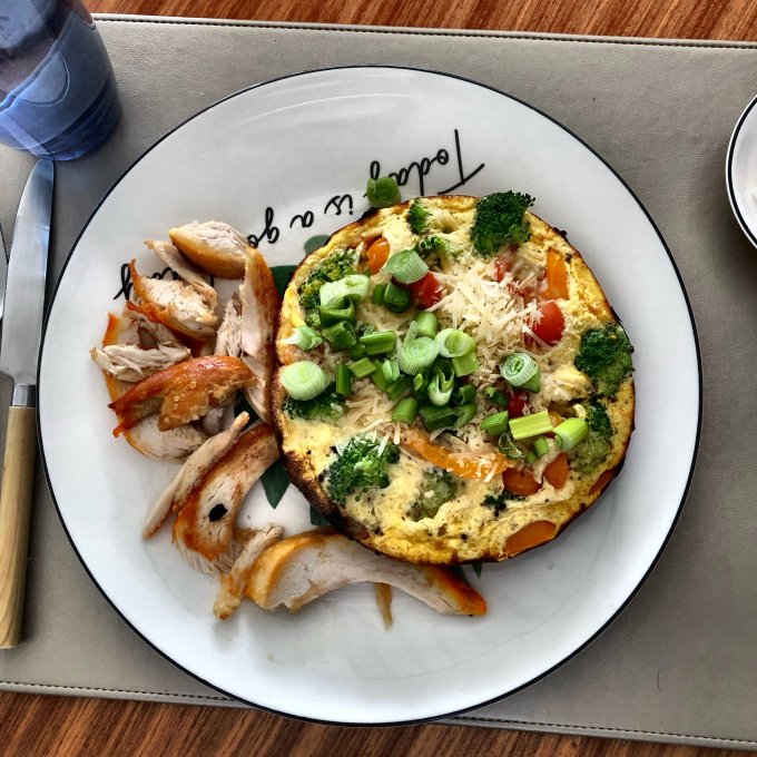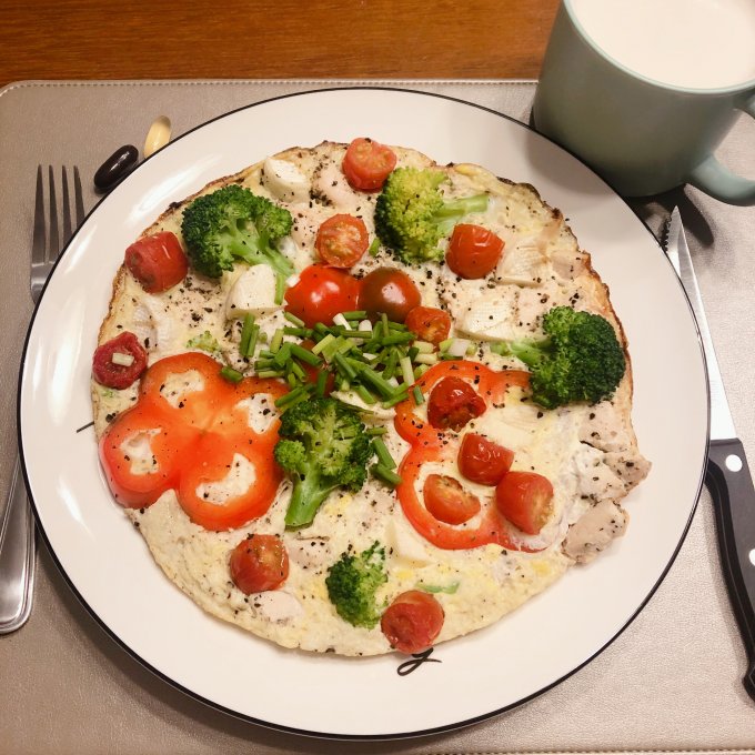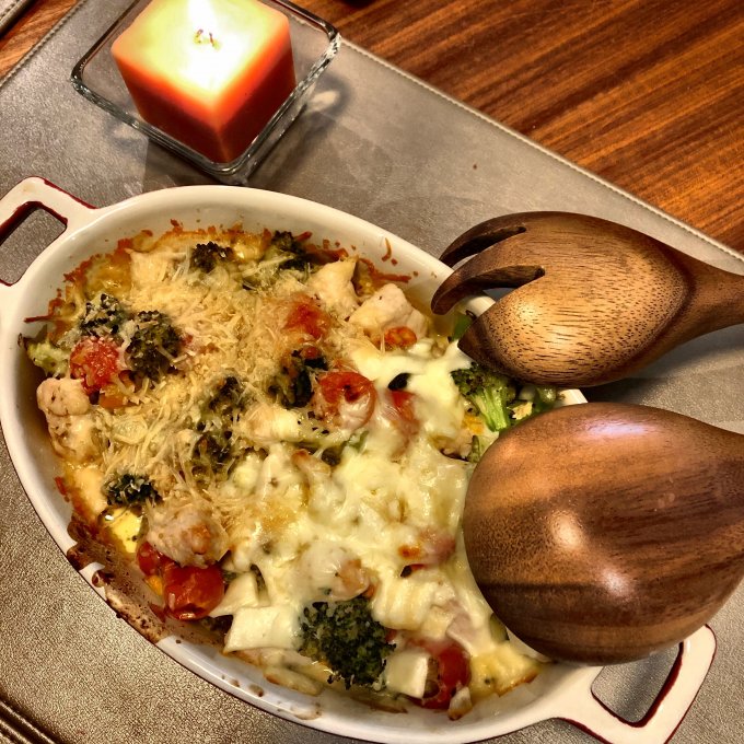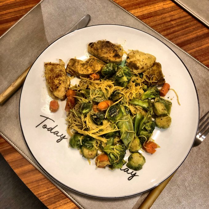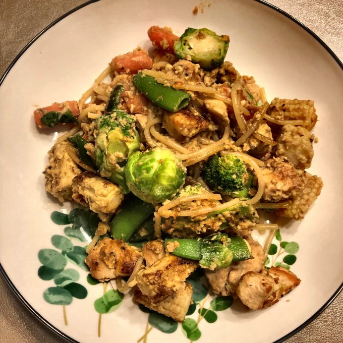 | Овощи и паста под соусом карбонара |