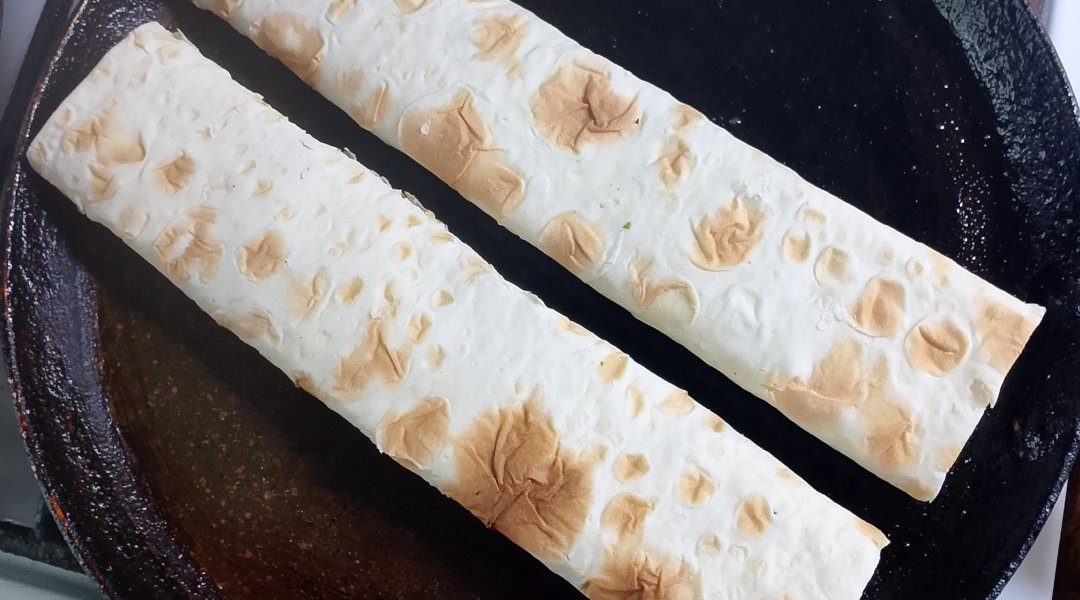 Обжарить трубочки на сковороде, с каждой стороны по 3-4 минуты