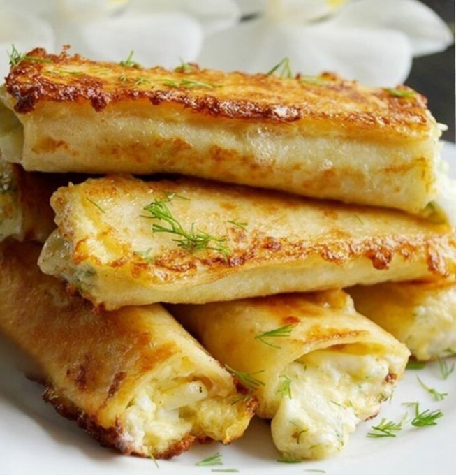 | Трубочки из лаваша с творогом, зеленью и авокадо |