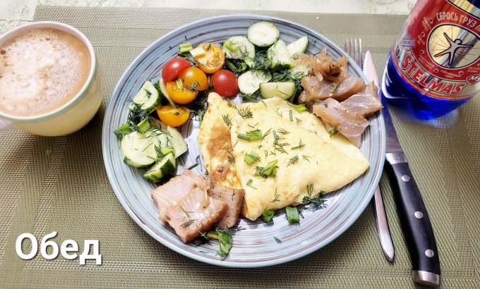 | Омлет,нельма,огурец,помидор,зелень |