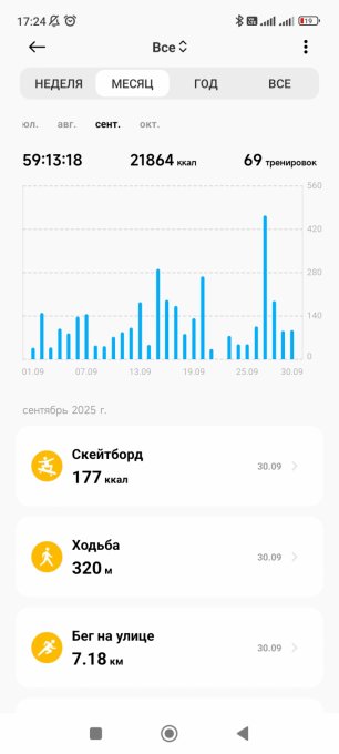 | Итого за день | 6468 | 3534 | 224 | 117 | 388 |