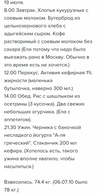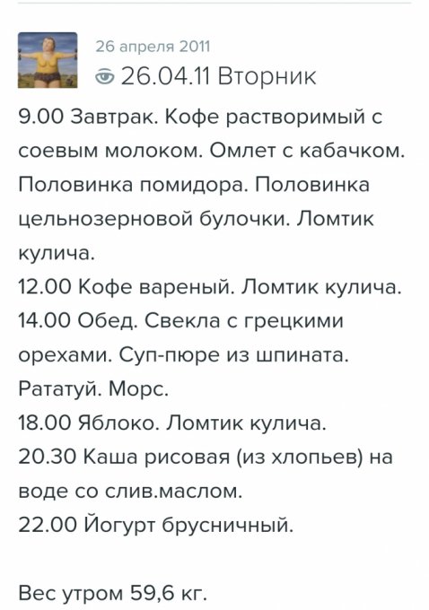 предыдущий успешный опыт похудения на 18 кг. Мне было в 2010 году