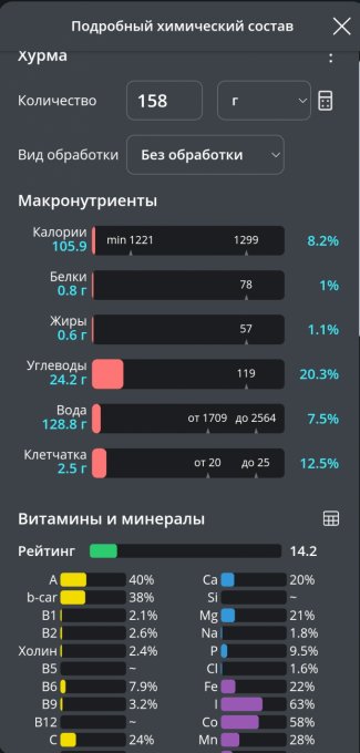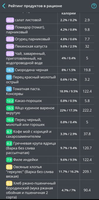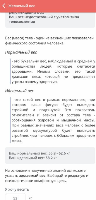идеальный и желаемый вес совпали.| Кол-во | Калории | Белки | Жиры | Углеводы | |