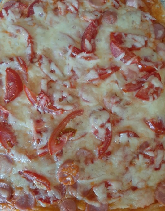 | Пицца с помидорами, сыром, колбасой |