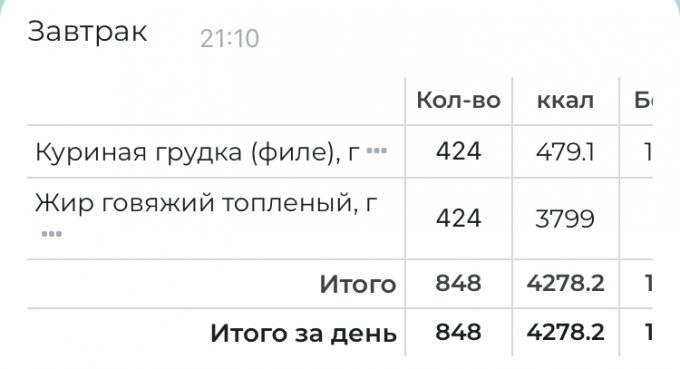 - первая еда часов 5 вечера (стейк рибай 300 - 400г + омлет из