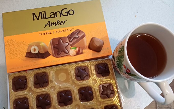 | Конфеты Milango с фундуком, карамелью, нугой и молочным шоколадом |