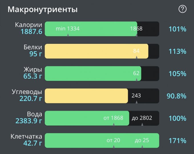 | Итого за день | 2550 | 1773 | 86 | 62 | 208 |