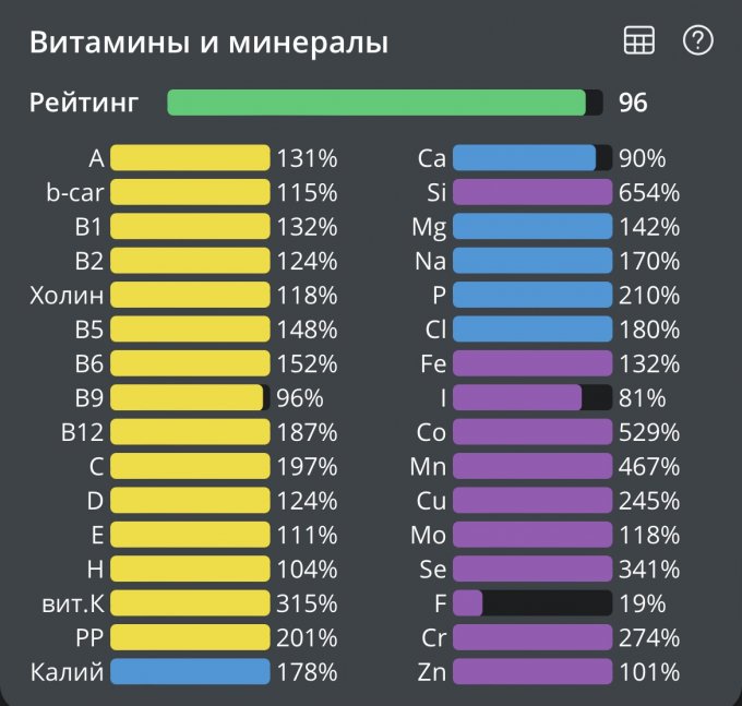 | Кол-во | Калории | Белки | Жиры | Углеводы | |