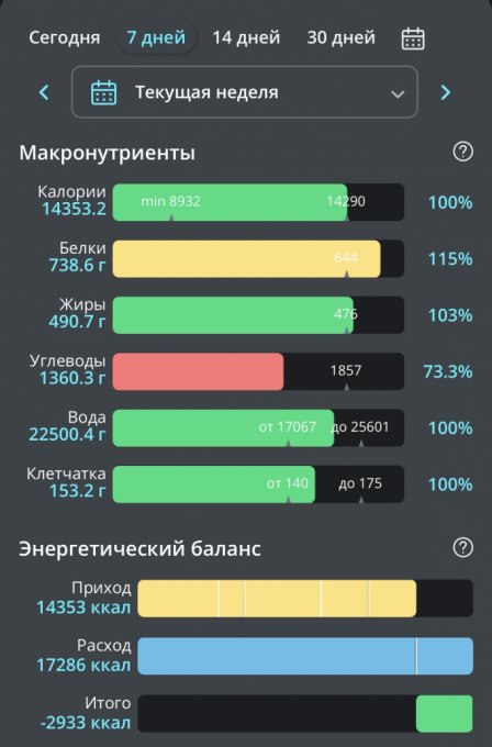 | Итого за день | 800 | 480 | 15 | 31 | 34 |