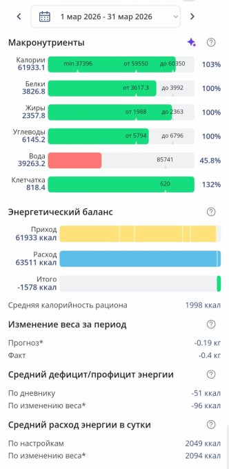 (Но тк диета продлилась на месяц, то профицит сделать не удалась