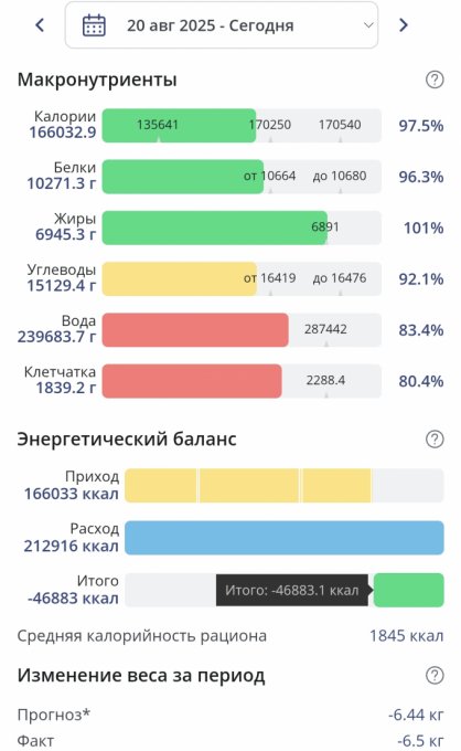 | Итого за день | 3610 | 1692 | 145 | 63 | 128 |