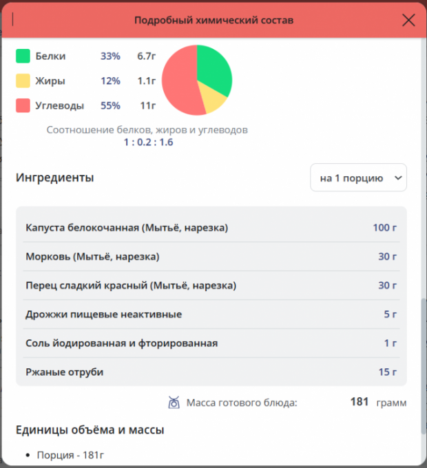 | Кол-во | Калории | Белки | Жиры | Углеводы | |
