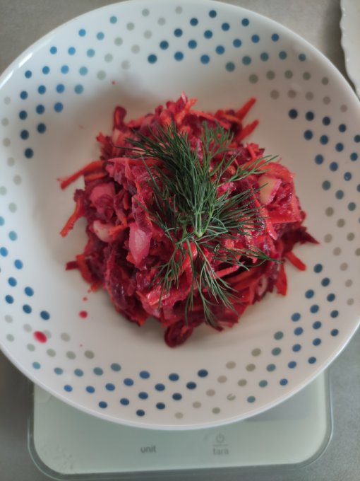 тоже вчера салат со свеклой, греческим йогуртом и чесноком ела )